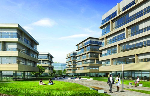 Jeśli wyobrazi sobie Pani kilka budynków biurowych o powierzchni około 3-4 tys. mkw. każdy położony pomiędzy zielenią, połączone alejkami, z dużym podziemnym parkingiem, to jest to idealne miejsce do pracy.