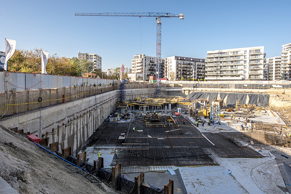 Na budowie inwestycji HB Reavis wykonano już wszystkie ściany szczelinowe oraz większość wykopu. Trwa realizacja płyty fundamentowej i stropów nad kondygnacjami podziemnymi. W grudniu rozpocznie się budowa pierwszych stropów nad poziomem "-1", co oznacza, że wkrótce potem budowa wyjdzie na powierzchnię.