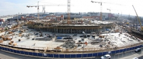 Na budowie Stadionu Narodowego w Warszawie został rozwinięty pierwszy fragment membrany dachu stałego, znajdującego się nad trybunami. Trwa również montaż elewacji obiektu.
