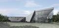 Wykonana niemal w całości z barwionego na czarno betonu architektonicznego skorupa przypomina pozaginaną kartkę origami. Jej forma oddawać ma atmosferę przebywania w prawdziwym hangarze. Przeszklenia głównej przestrzeni ekspozycyjnej gmachu, a także mniejsze - w pozostałych częściach - dodają mu lekkości. Z zewnątrz miejscami staje się on transparentny. Bez trudu można na przes...