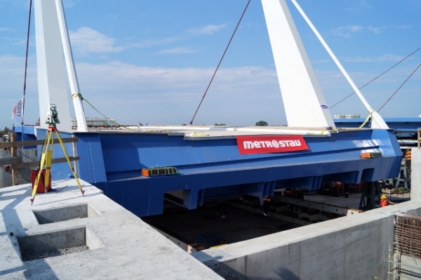 Metrostav rozpoczął montaż przęseł zwodzonych na budowie mostu w Sobieszewie. Wykonawca przystępuje więc do najbardziej skomplikowanego etapu prac. Przez najbliższe tygodnie na most nasuwane będą przęsła ważące ok. 320 ton każde.