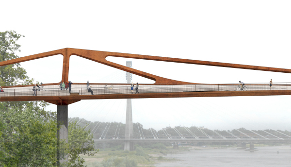 Projekt architektoniczny mostu pieszo-rowerowego został wybrany w międzynarodowym konkursie, ogłoszonym pod koniec 2016 roku i rozstrzygniętym we wrześniu 2017 roku. Zgłoszono w nim aż 40 prac konkursowych, z czego 6 z zagranicy. Pierwszą nagrodę w wysokości 100 tys. zł oraz zaproszenie do negocjacji w trybie zamówienia z wolnej ręki otrzymała spółka Schuessler-Plan Inżynierzy. Ich koncepcję nagrodzono m.in. za powściągliwą i niezwykle elegancką formę, wpisującą się w pejzaż tej części miasta oraz wysoką jakość architektury. Projektanci „zachowując oryginalny i niepowtarzalny wygląd przeprawy, nie starali się konkurować z charakterystycznymi obiektami zlokalizowanymi w sąsiedztwie mostu”, jury doceniło także możliwość sprawnej i efektywnej realizacji tego projektu. Most nie będzie prostą „belką” przerzuconą pomiędzy brzegami, aż do drugiej podpory na jednym i drugim brzegu będzie w osi ulic, a pomiędzy nimi będzie przebiegał skośnie. Punkty załamań staną się naturalnymi punktami widokowymi zapraszającymi do zatrzymania się i podziwiania wiślanego krajobrazu.