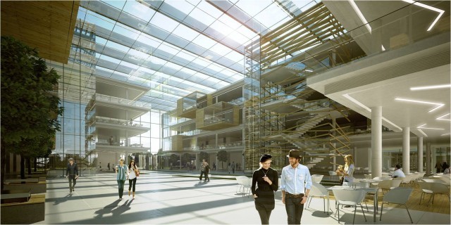 W budynkach znajdzie się kompleksowa infrastruktura usługowa, dzięki której pracujący tutaj ludzie będą mogli zaoszczędzić swój czas: kawiarnie i niewielkie restauracje, punkty bankowe i pocztowe, pralnia, salon kosmetyczny, biuro podróży, fitness club, apteka. Strefy open-space i gabinety będą połączone z wewnętrznymi dziedzińcami i tarasami widokowymi, co umożliwi komponowanie zróżnicowanych modułów biurowych. Dzięki takiemu elastycznemu wyborowi tzw. stref otwartych i układów gabinetowych, każdy z użytkowników znajdzie własne, funkcjonalne rozwiązanie, najlepiej odpowiadające jego indywidualnym potrzebom.