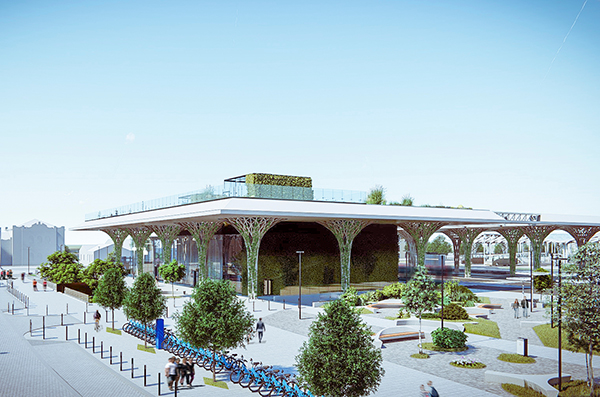 Wyróżniony projekt zakłada wiele proekologicznych rozwiązań: gruntowe pompy ciepła dostarczające energię do ogrzania budynku, szklaną ścianę dworca o niskim współczynniku przenikania ciepła. Zastosowano także panele fotowoltaiczne na dachach stanowisk autobusowych oraz antysmogową kostkę brukową. Na dachu budynku dworca przewidziano nasadzenia zieleni wydajnej w oczyszczaniu powietrza. Zaplanowano również system odzyskiwania deszczówki na potrzeby podlewania i do celów sanitarnych. Nowoczesny obiekt z podziemnym parkingiem oraz zielonymi dachami będzie gotowy do końca lipca 2022 roku.