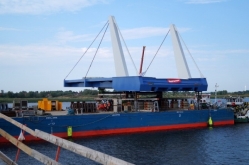 Metrostav rozpoczął montaż przęseł zwodzonych na budowie mostu w Sobieszewie. Wykonawca przystępuje więc do najbardziej skomplikowanego etapu prac. Przez najbliższe tygodnie na most nasuwane będą przęsła ważące ok. 320 ton każde.